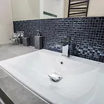 Dieses Apartment verfügt über ein Badezimmer mit einem Haartrockner und Badelaken. Außerdem gibt es hier eine begehbare Dusche und eine getrennte Toilette.